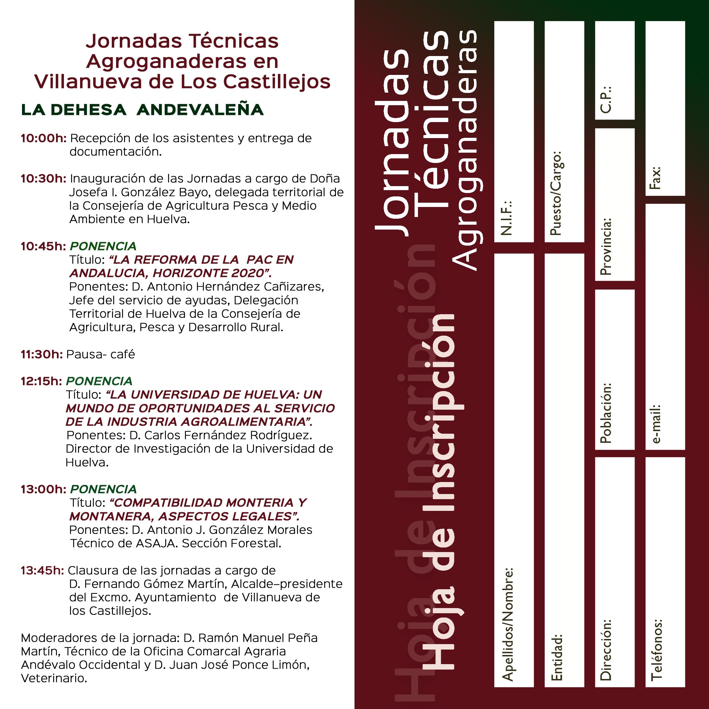 El próximo día 4 de diciembre, en la sede de M.M. BETURIA, sita en C. Gibraleón 43, en la localidad de Villanueva de los Castillejos, se celebraran las “JORNADAS TÉCNICAS AGROGANADERAS 2014”, donde participara Antonio Gonzalez, técnico de ASAJA Huelva, ofreciendo una ponencia titulada: “Compatibilidad Montería y Montanera, aspectos legales”