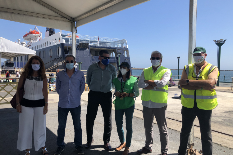 Felix Sanz y Chantal Buisán despidieron ayer en el Puerto de Huelva al último contingente de tempore